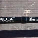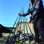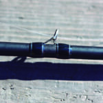 スピニングロッドはティップだけハイドアップブルーに染められている。