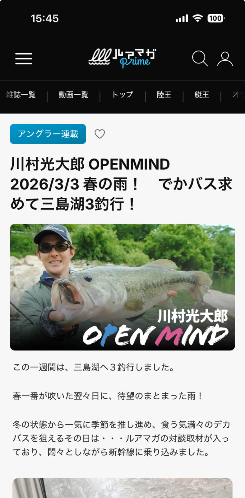 以上、最後までお読みいただきありがとうございました! パワーアップしたルアマガプライムはこれからも皆様のバス釣りライフがより豊かになるよう様々なコンテンツを提供し、皆様とともにルアマガプライムをより魅力的なプラットフォームにしていきたいと思います。よろしくお願いいたします!