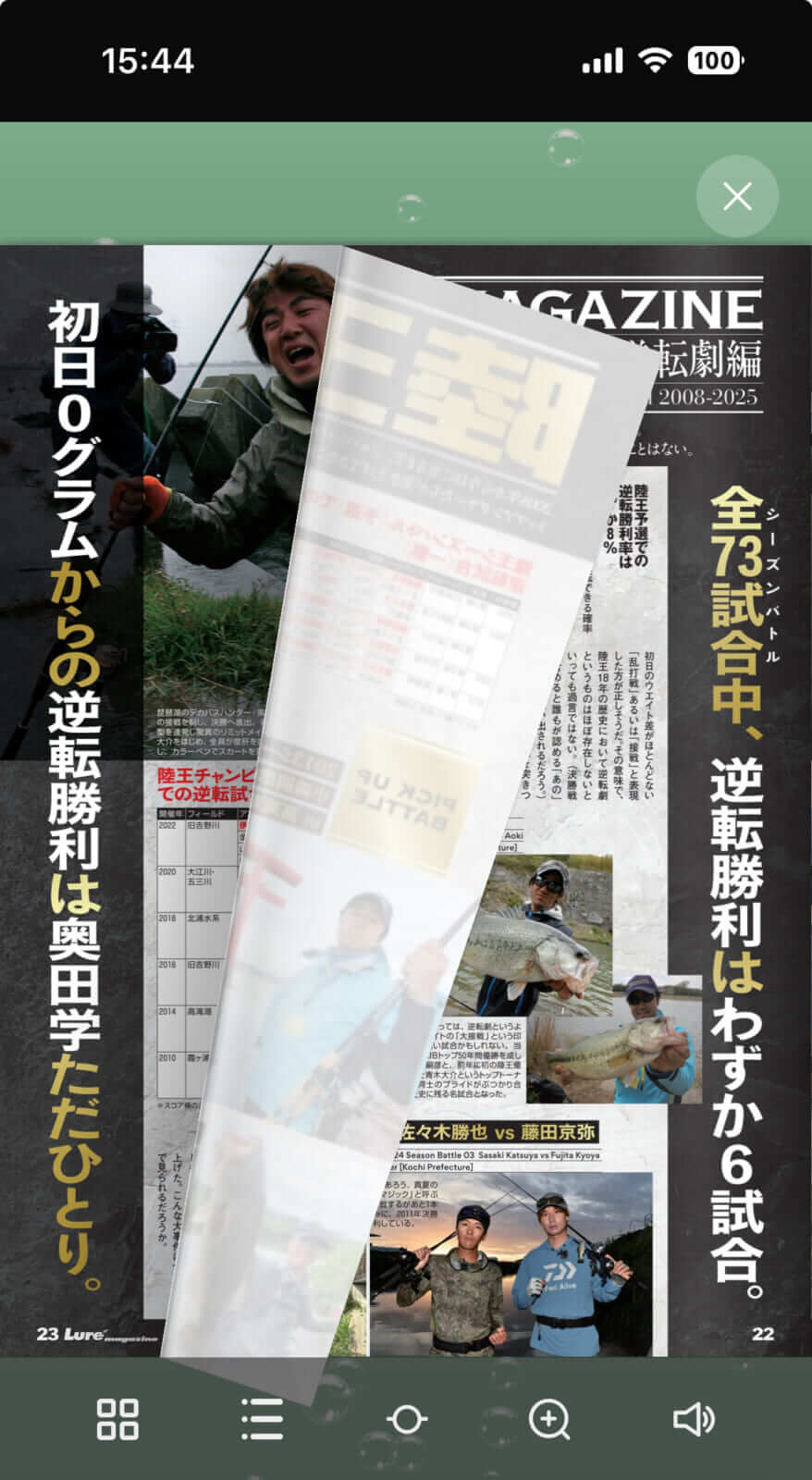 これまでの電子版と比較して読みやすさと操作性をアップグレードしました。ルアマガプライムにログインすれば簡単に閲覧できます。