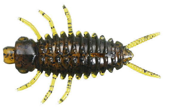 ワーム単体の重さは2gほどだが、これもフルソリッドベイトの使用の範疇に入る。ヤゴをイメージしたデザインで、ハイプレッシャーなエリアのバスも違和感なくバイトさせるひと口サイズに。中空成形ボディで、内部に浮力体やウエイトを入れて使用できる。