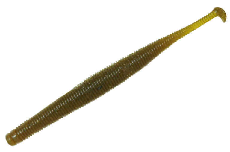 スティックベイトに極小シャッドテールのアピールをプラスした、ジグヘッドやキャロでの定番ワーム。ライトキャロで使用し、フルソリッドでも問題なく遠投ができた。1.8gのライトテキサスでもバスをキャッチ。