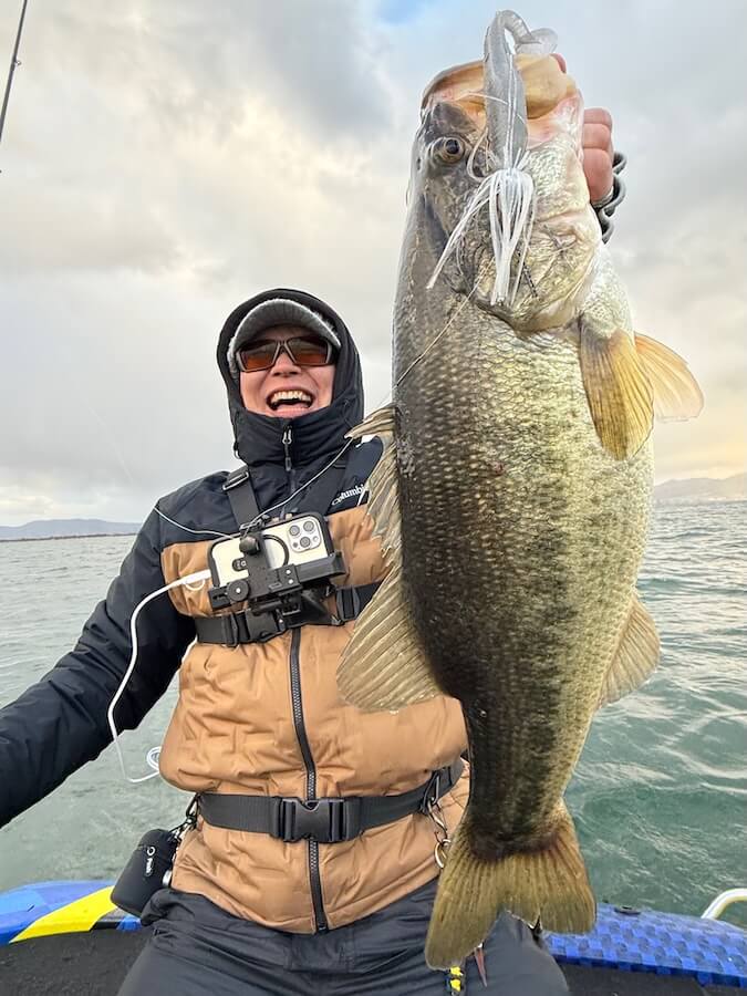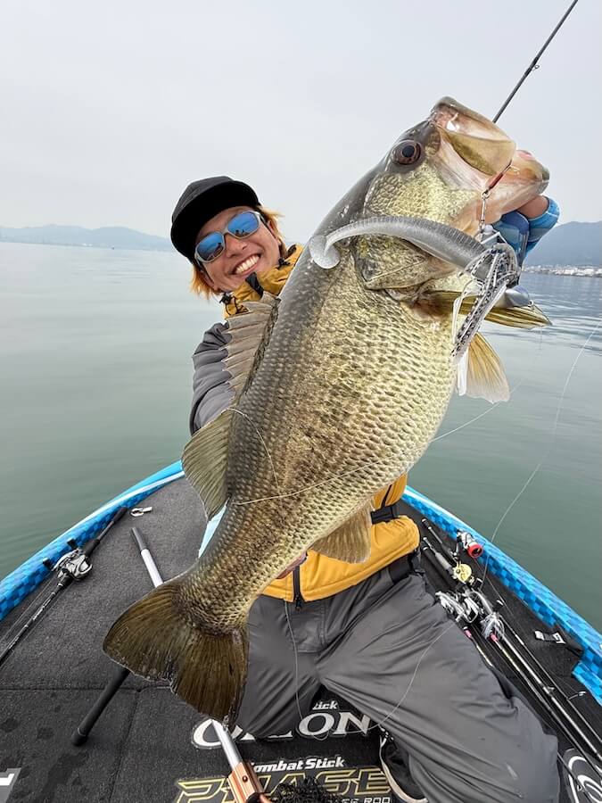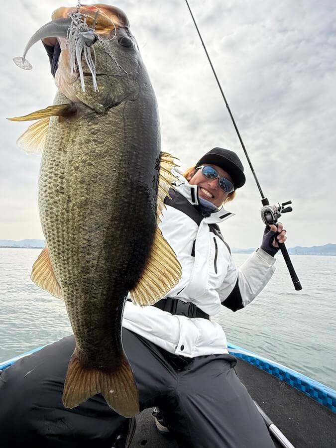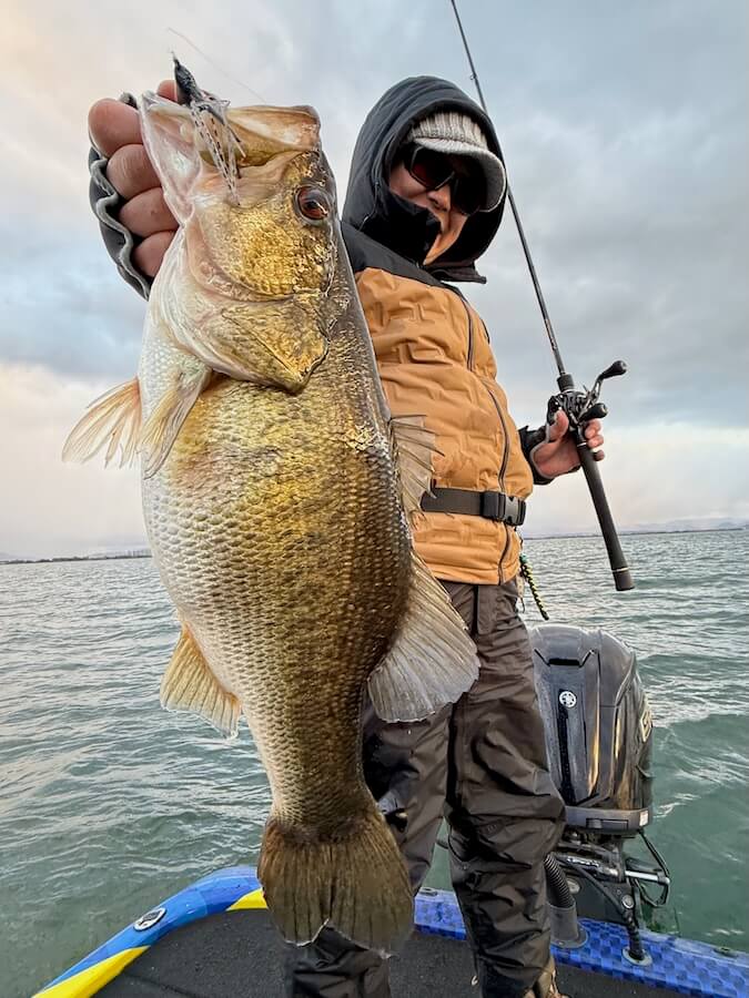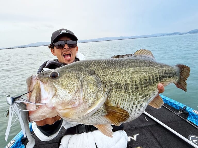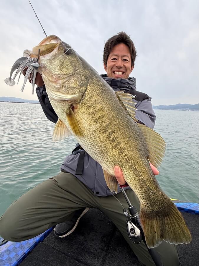大西健太さんの琵琶湖レポート。スイミングジグで連日でかバスラッシュ。そしてガイドフィッシュの記録更新! こんなでかバスが釣れるなんて、やっぱり琵琶湖は夢がある…。