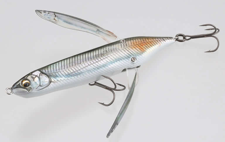 小魚系ボディフォルムに透明ウイングを搭載した細身のクローラー。バズベイトのような高速巻きから、水面でぴくぴくさせる誘い方にも対応。安定した飛行姿勢による優れた飛距離も大きな武器になる。