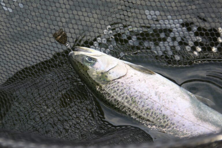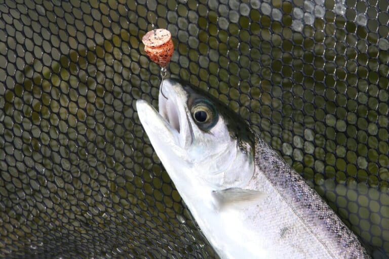 管理釣り場で与えられるエサ=ペレットを模した、小粒の円柱タイプのルアーのこと。魚が日常的に食べる〝ごはん〟に近いため、釣れて当たり前と揶揄されることも少なくない。一見再現性に頼ると見られがちだが、実際には軽量なので操作は繊細で、吸い込むような弱いバイトを掛けるには技術が必要。渋い状況でも一本を獲る切り札として投入されることも多い。