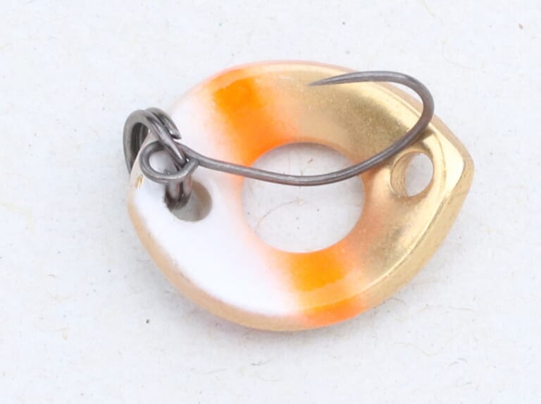 水流力学を勉強し、よりエネルギーを高めるべく穴を開けたという「バベルエース」。動かないの動かないのに釣れるのはまさに水流のおかげだ。