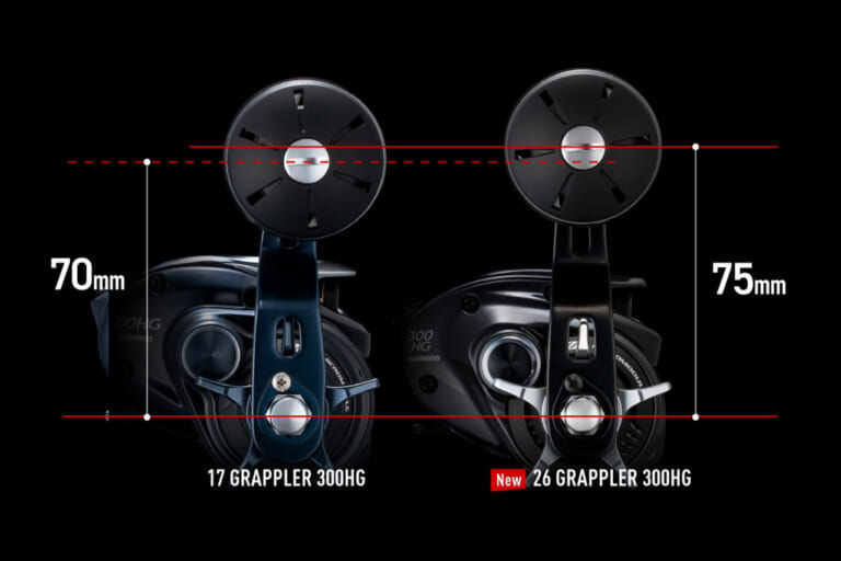 ハンドル長は従来の70ミリから75ミリへロング化。深場のジギングや重いジグ、強烈な魚の引きにも対応し、より力強い巻き上げを可能にした。ハンドルノブにはCI4+ラウンドノブを採用し、握りやすく軽快なリーリングフィールを実現している。