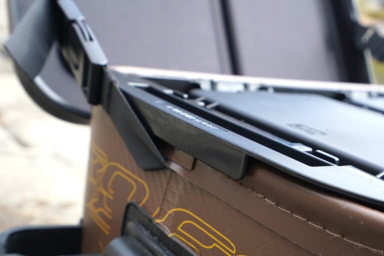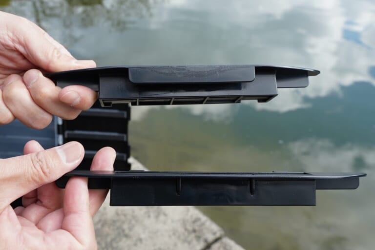 アタッチメント[B]を装着するにはひとつだけ条件がある。それはバッカンの蓋を閉じた状態で上の写真のように、若干の隙間があること。ロデオクラフトのバッカンには隙間がある。ロデオクラフトタイプのバッカンはアタッチメント[B]も装着可能。