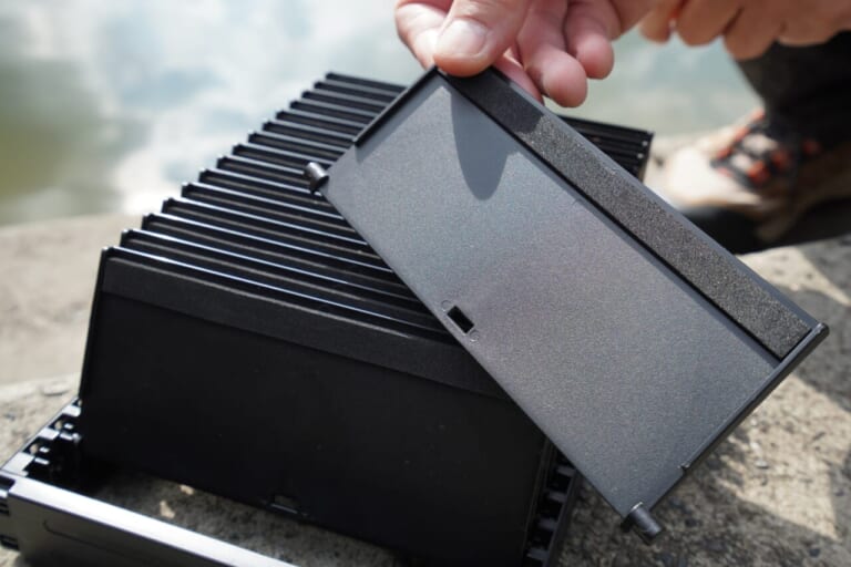そして前回のボックス編での最大の反省点がプラグハウス。前回のボックス編ではプラグハウスにクランクベイトも収納した。それでも十分に機能するが、このプラグハウスが真価を発揮するのは、やはりミノーやニョロなどのロング系プラグの収納。