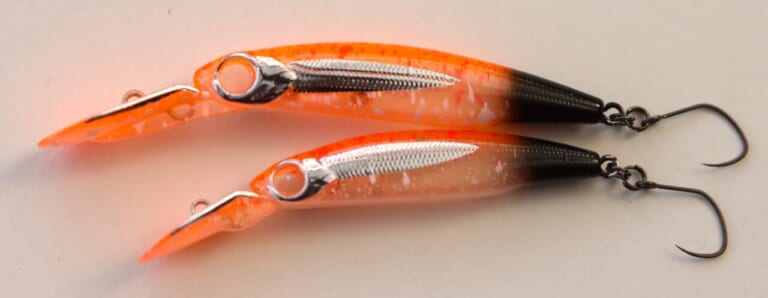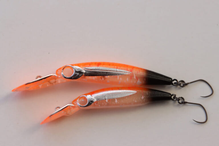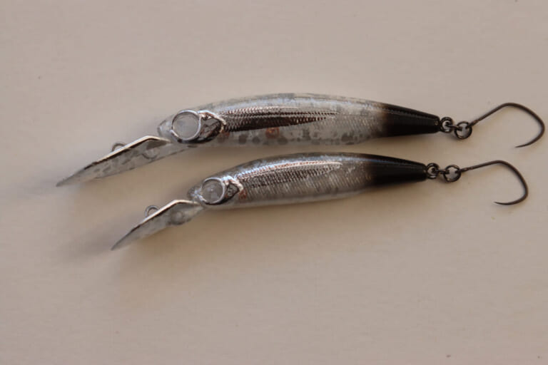 岡田さんは、トラウトのレンジに対する反応を見極め、ロッドやフックを使い分けて最適解を探っている。基本は48HFの速い動きで高活性な個体を狙うが、特筆すべきは長めのアジング・メバリング用ロッド(6フィート6インチ)を駆使した深場攻略だ。