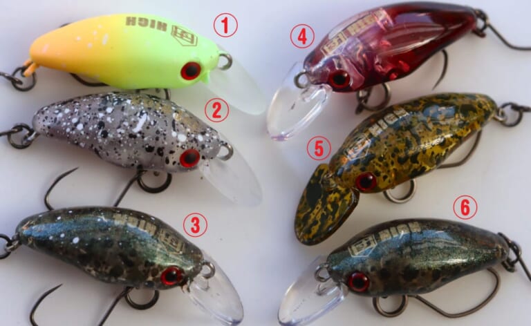 佳汰「ダンゴウオの食わせ能力は、現存するクランクの中で間違いなくマックス。これ以上に特化したルアーを僕は知りません。基本はデッドスローで使うルアーだと思われていますし、実際その比率も高いですが、実はスピードの許容範囲がめちゃくちゃ広い。速めに巻いてもかなり活躍してくれます。ビアな時はもちろんですが、僕はもっとパワーのあるクランクを投げるような段階から投入することもあります。例えば東山湖のような広大でマッディな場所。普通は選ばないアングラーが多いですが、これが爆発するんです。波動が弱すぎて、他のクランクとは明らかに様子が違う。その『弱さ』が逆に存在感として際立っている気がします。ちなみに、こういう攻め方をする時は強めのカラーがオススメですよ」