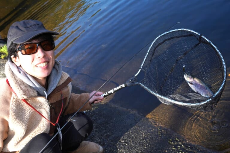 岡田「ダンゴウオのHighとLowは、僕の中では完全に別物のルアーという認識です。Highの方が動きが強いので、一般論通りまずはそっちからスタートしますが、正直『Highで釣れる魚はスプーンでも獲れるんじゃないか』と迷う時もあります。でも、Lowは代わりの効かない唯一無二の存在。もはやルアーというより『浮遊物』としてトラウトに口を使わせるイメージですね。基本はラインのフケを取るくらいの極限デッドスローで使いますが、実は普通のリトリーブ速度で巻いても、いい仕事をしてくれるんです。使い込むほどに使用幅の広さに驚かされますし、シビアな状況でも常に自分を助けてくれる。本当に大好きで、信頼しているルアーですね」