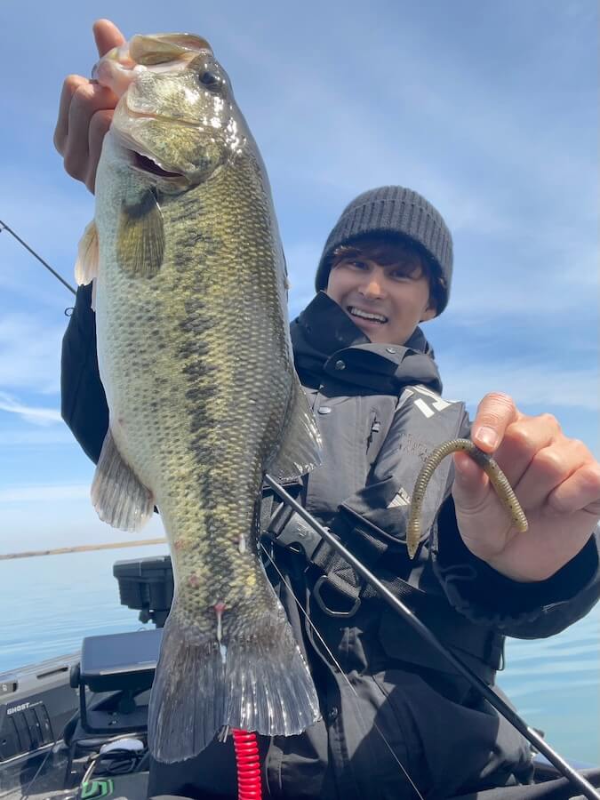 オスはブレイクの上で食ってくるので、ブレイク上のハードボトムを巻いて食わせる。メスは下のレンジにフリーリグ、ジグヘッドワッキーなどをゆっくり落としていって食わせている感じになります。
