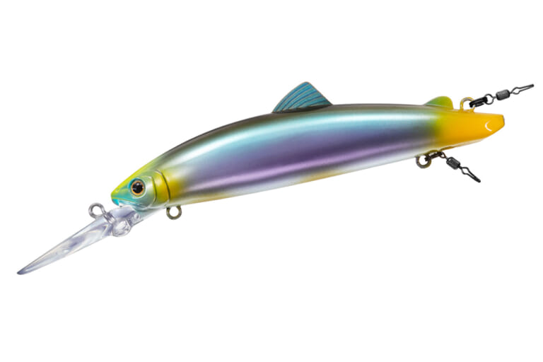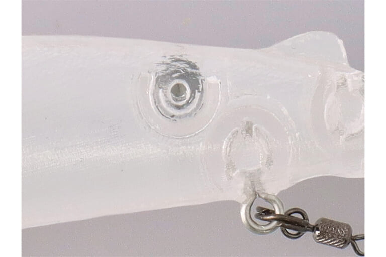 さらに腹部後方アイの背面にはマグネットを内蔵。スプリットリングを固定し、イカリを真っ直ぐ後方へ垂らすことで絡みを抑制する。リップ裏にもアイを備え、シンカー装着によるチューニングにも対応するなど、拡張性も確保されている。
