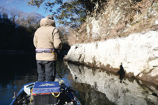 取材時は1月、ありていに言えばバスフィッシングのオフシーズンだ。しかし、ここ相模湖においてはビッグバスを釣るのに適した季節だという。