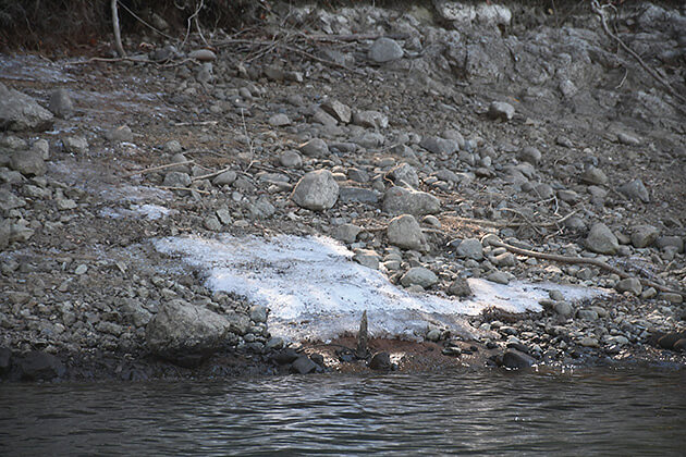 この冬一番の寒さを迎えた取材日の相模湖。朝の気温はマイナス7度、出船した秋山川ボート前の水温は4度。キャストするとラインが運んだ水がガイドで凍ってしまい、思うように釣りにならない。しかし、桂川方面の水温は7〜8度と高かった。