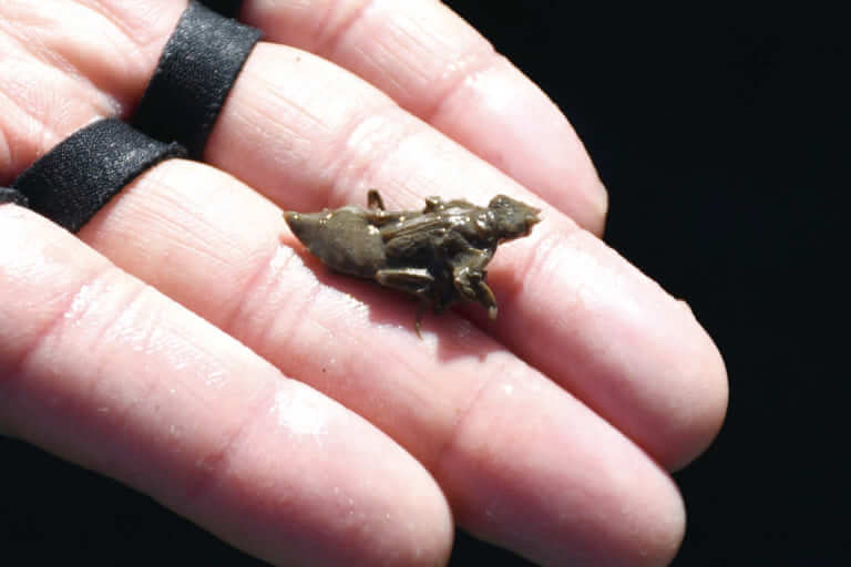 ヤゴの他にはエビ系などもまれに食べているという。冬はエビゴリが冬眠してしまうので、捕食されることは少ない。