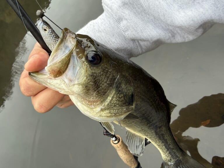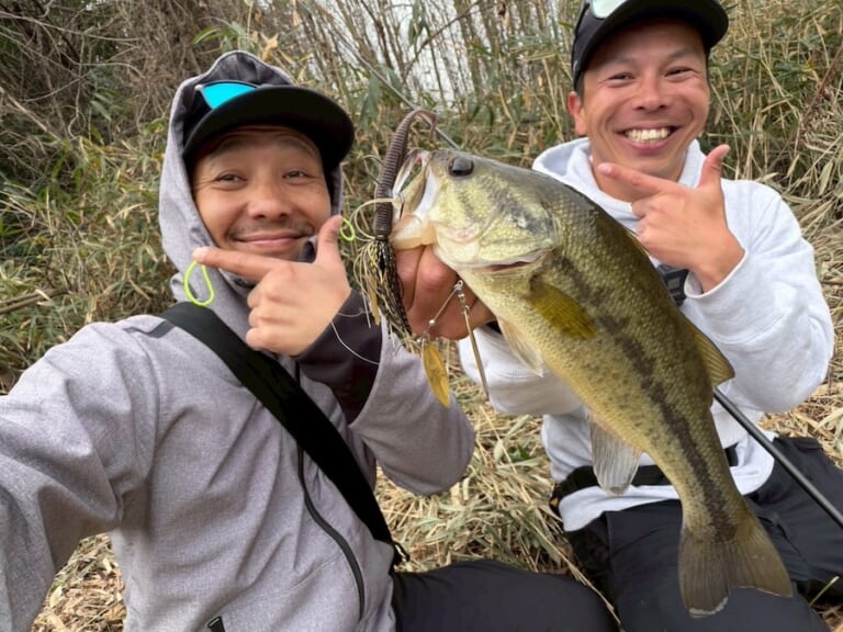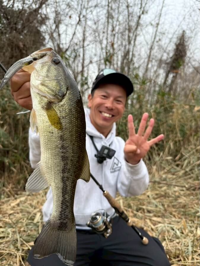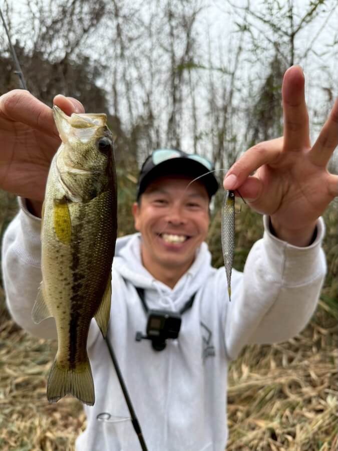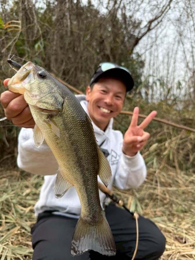 この日は寒の戻りのタイミングに当たり魚のテンションは高くないかと予想してましたが…想像以上に魚はイケイケ。お互いサクッとレベルスピンにて1発仕留めることに成功しました。