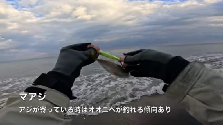 遠投性能を活かし、沖の地形や潮のヨレ、ベイトの存在を丁寧に探っていく。