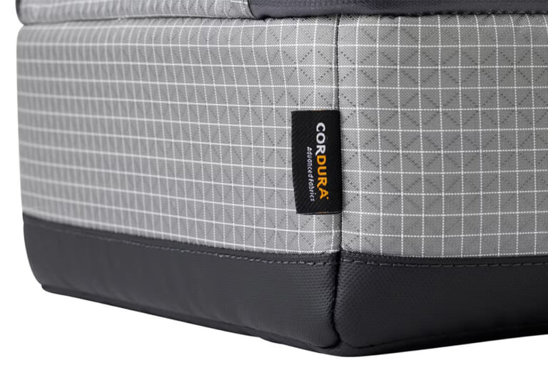 外装には高強度コーデュラ®ナイロンを採用し、底面には840Dバリスティックナイロン+防水加工を配置。軽量ながら擦れや直置きにも配慮した仕様となっている。