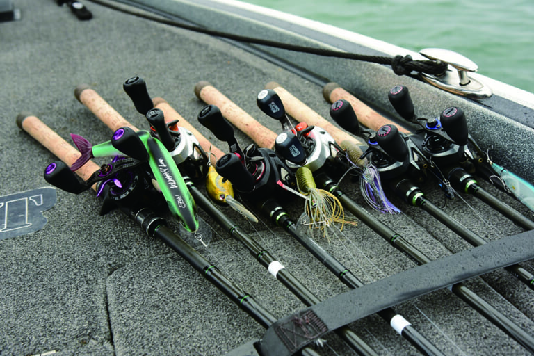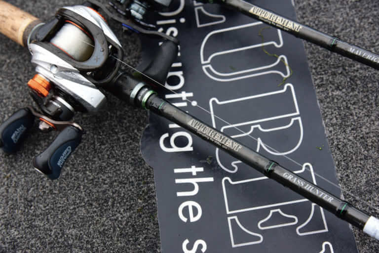 「今使っているのは7ft1inのMクラス。トレブルフック専用のロッドなんですけど、高弾性だと逆にルアーが動かなくなってしまうんですよ。ルアーが生き生きと動いてしっかり仕事をさせるには低弾性のダルさが必要だと思います。低弾性だとウィードにも入り込みすぎないんですよね。リールもローギアの方がウィードへの突っ込みを防いでくれます」。