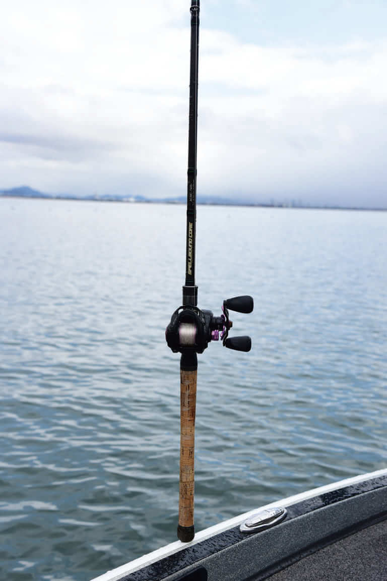「ルアーの重さが4ozあるので、リアグリップの長さが30cm以上ないと振り抜くのが結構キツい。実際、僕が監修しているアルアメントのこの釣りを意識したモデルは32cmで設定しています。調子は胴で曲がるレギュラーテーパーがいいと思います」。