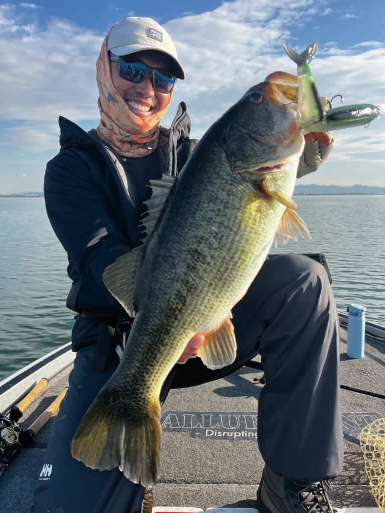 「これをやれば絶対釣れる、というのは正直ない。ただ、無音系の横の釣り、スイムジグなどナチュラルな横移動の釣りが効くことがあります。それも効かないくらい冷え込んだ時は、音がしっかり出るクランクベイトがめちゃくちゃ効くことがありますね」。