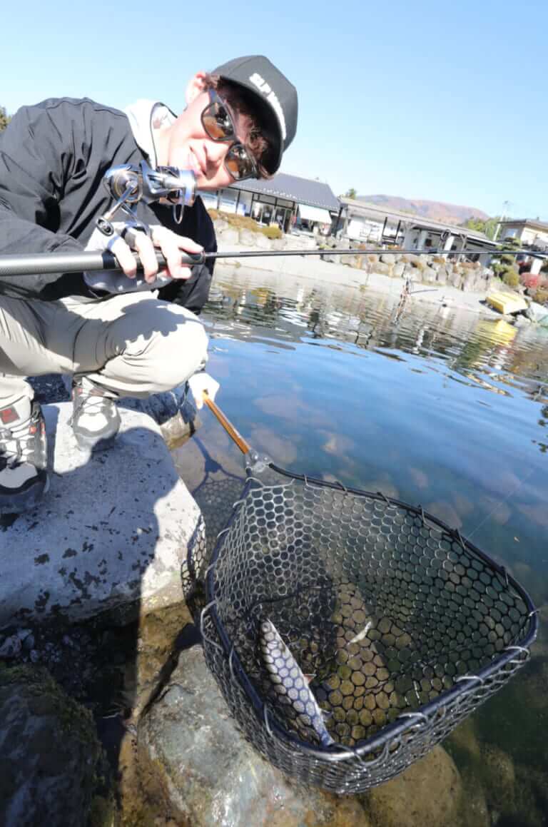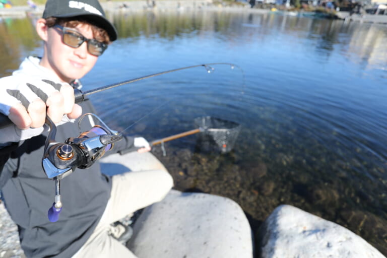和田さん「エリアトラウトで使うと、巻き出しの軽さとか、ルアーを巻いてるとき引き抵抗とか、水中の変化をものすごく感じやすくなる。見えてなくても見えてるみたいな、情報量が圧倒的に増えます」。