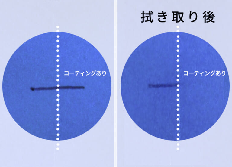 汚れが表面に固着しにくく、軽くひと拭きするだけでこの通り。コーティングの有無で、落ちやすさの差が一目瞭然だ。
