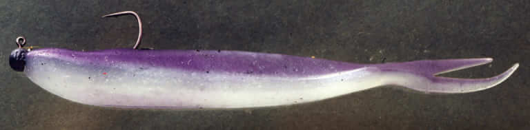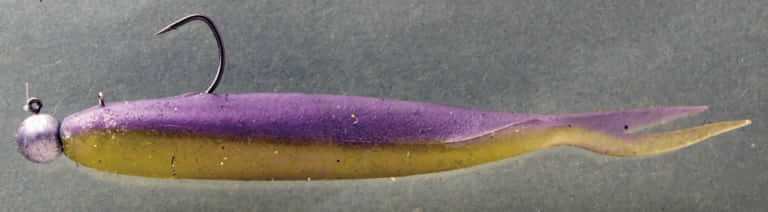 ジグヘッドはホリゾンヘッドLGかLGライト(がまかつ)。ワームのズレ防止にインセットキーパー(リューギ)を使用する。2.6gまではS、3.5g以上はM。カラーは昨年はパープルウィニー、ハス、ゴールデンシャイナーなどが実績ありとのこと。