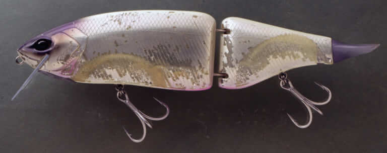 「クラッシュ9を箱から開けた状態で、浅いところならそのまま、狙うのが若干深い水深4〜5mならリップの後ろに2gの鉛シールを貼る。さらに深い場所はグレネードシンカーで調節することもあります。でも、あまりフォールスピードが速すぎると食わせるのが難しくなるので、できるだけスローシンキングにはしますね」。
