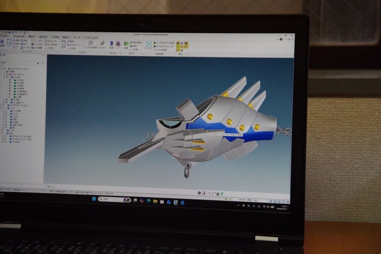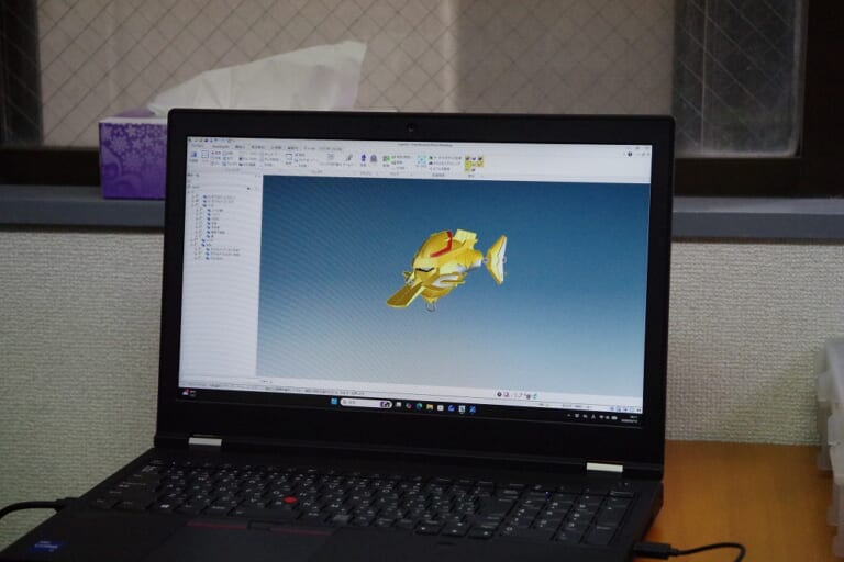 田畑「今回のルアーのデザインは、色塗りを意識したパーツ構成になっています。これは中身をくりぬいていない(浮力のスペースがない)からこそできる分割でした。塗装をとるか、内部構造をとるか、という選択肢があったわけです。あとホビーの場合、変形機構のために内側の自由度が高くないことも多いですね」