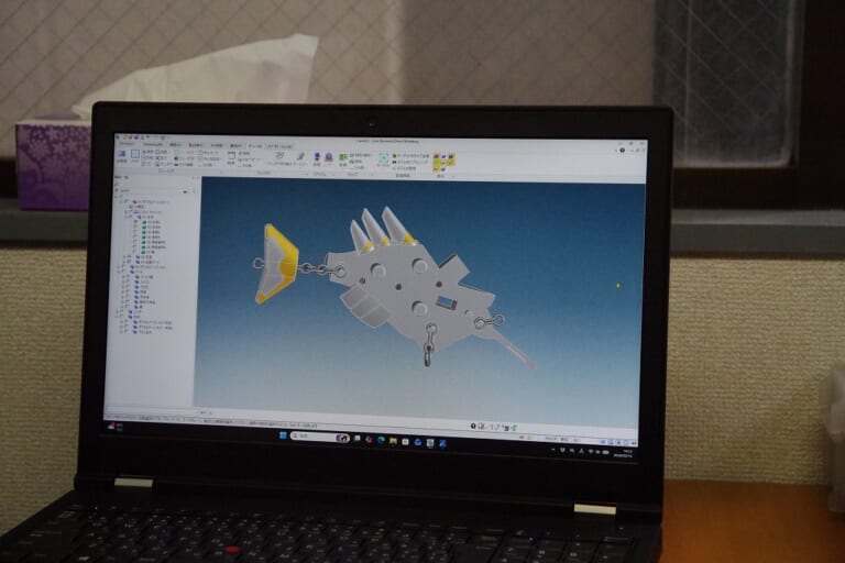 ロボットであろうがルアーであろうが、その構成に曲線は多く含まれている。単に直線をつなぎ合わせるよりも難しいのは明白だが、どのように線を引いているのだろうか。