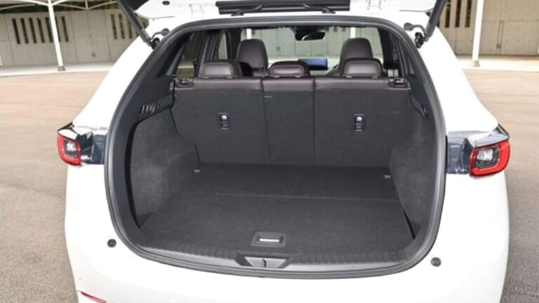 CX-5が釣りに最適な理由は、まず「可倒式シート」。バスロッドのようなワンピースロッドや大きな荷物も後席を倒せば積載できる。