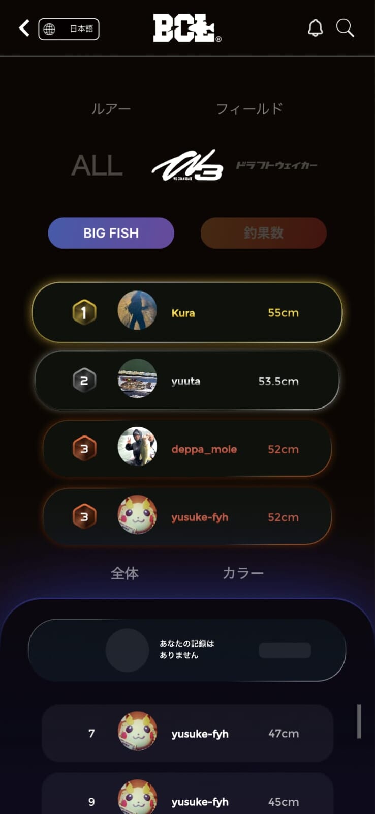 できるようUIがリニューアルされた。他にもルアーごとの釣果ランキングが実装されて、まだ見ぬラ