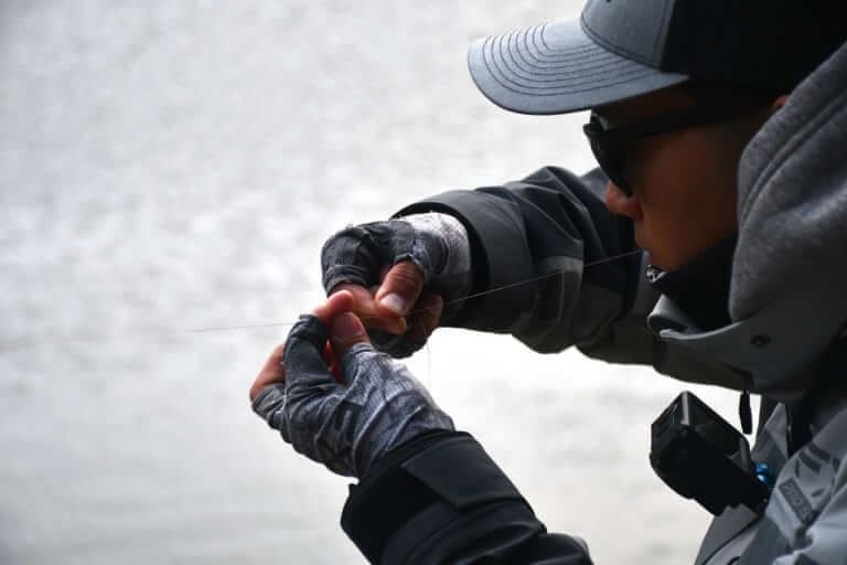 PEとリーダーの結束にはFGノットを使用。リーダーの長さはひとヒロ(1.5m)ほど。「ノットはゆっくり丁寧に締め込んでいくと綺麗に結べますよ」。