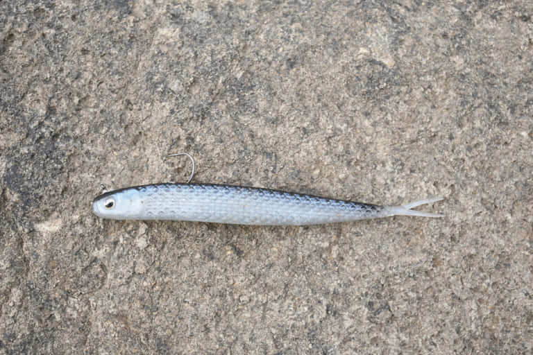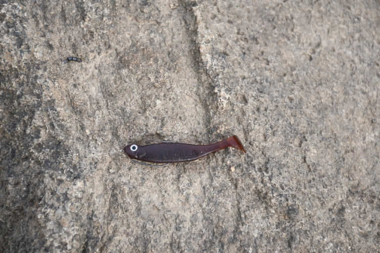 スーパーフィッシュローラーは5inと6.5をシルエットの大きさでローテ。使い方は同じで、見えるレンジでのホバスト。今回は6.5inのほうが反応が良かった。ホバスト用フック#2/0、ネイルシンカーTG1.3g(リューギ)をセット。
