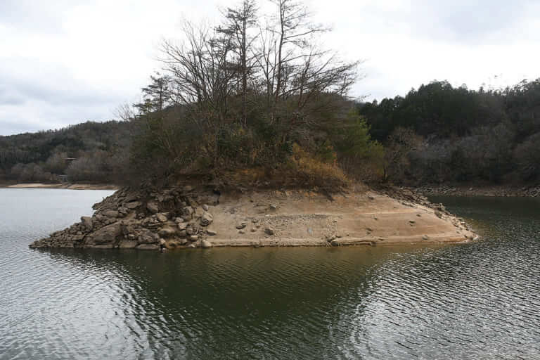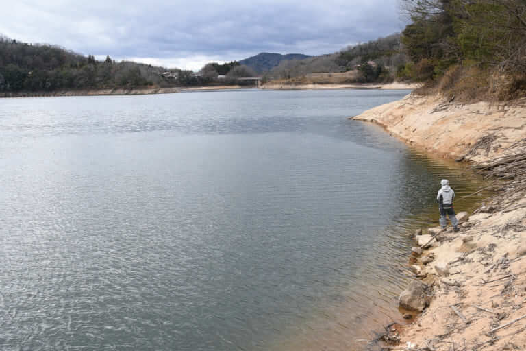 広島県三原市にある中規模リザーバー。ロケ時は大減水しており、実釣エリアはかなり狭くなっていた。植盛さんは10代の頃に白竜湖へかなり通ったとのこと。最近は足が遠のいていたが、昨年の陸王初戦の結果を見て、改めてそのポテンシャルを再確認、今回のロケ地に選んだ。