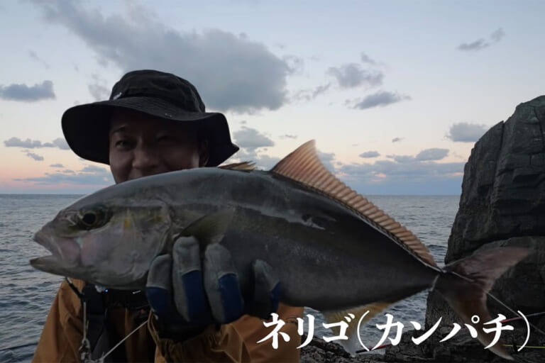 上がってきたのはネリゴ(カンパチ)。嬉しい1本だ。