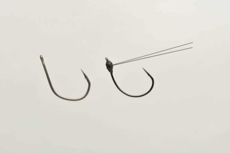 シンカー側を下にして、フックを支点にワームが開閉する動きは、バスの本能を直撃。村上さんによる基本コンセプトを軸に、以降はフックのセッティング法やシンカータイプなど進化が進んでいった。
