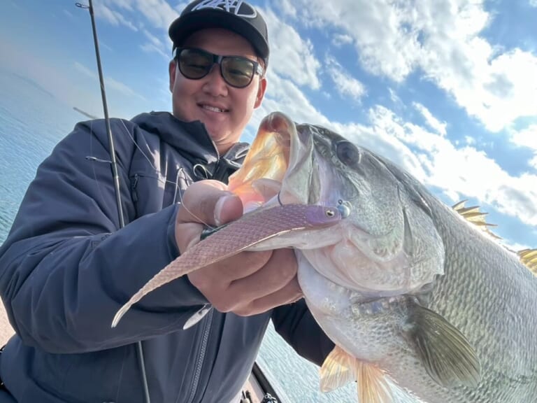 「しっかり琵琶湖に通うようになったのは2023年くらいからです。なので、今年で3年目ですね。2023年のMUTAクラシックに呼んでもらえたのがきっかけで、それで琵琶湖にハマっちゃいましたね。それまでは、数えるくらいしか琵琶湖では釣りをしたことがなかったですが、この時のプラで初めて自分のボートで琵琶湖に浮きました。プラでも大会でもでかいのが釣れたし、楽しかったです。ただ、成績は全然ダメ。優勝した方は10キロ以上釣ってきて、僕もそんなふうに勝ちたいって思いました。あと、僕がこれまで戦ってきたフィールドとは、琵琶湖のバスは違う性格で、独特のクセがあるなって感じたんで、これは攻略しないといけないなって思ったんです。琵琶湖を攻略することで、トップ50でも活かせるんじゃないかとも思いましたしね」。