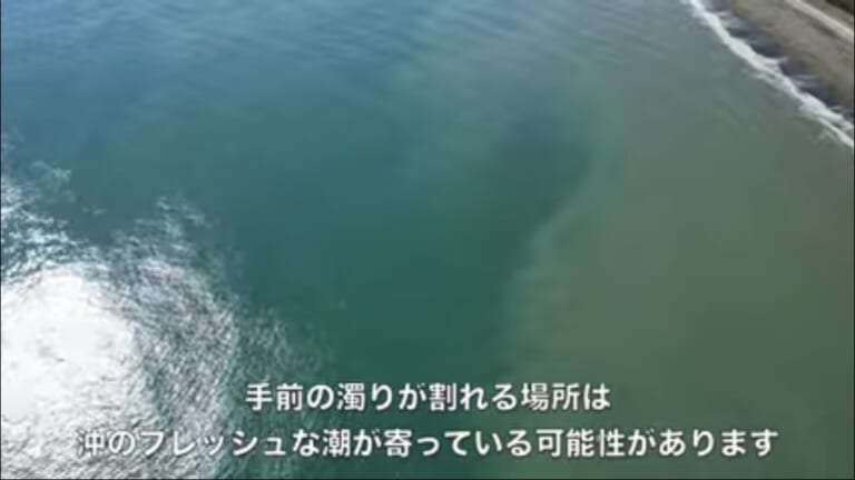 こうした水色の境目は、ベイトが溜まりやすく、大型魚が通過する可能性が高い。