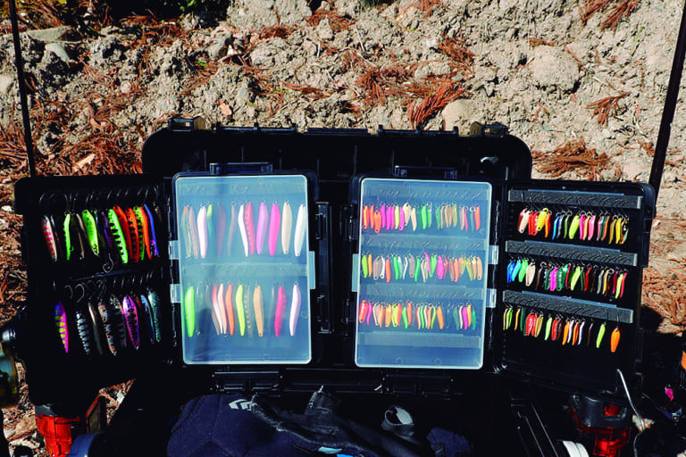 エリアトラウトで定番化している観音開きのボックスシステム。本多さんはメイホーのトランスフォームAを使ってパラトなどのスプーンを収納していた。