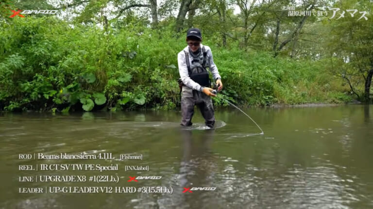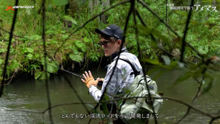 北海道の渓流を攻略するために開発されたロッドを使うのが、西川さんの“最新ベイトキャスティング論”になるが、その理論をより強固にするためにラインにもこだわりを持つ。