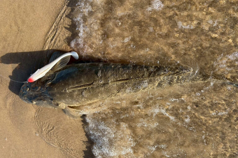 日本で釣れるマゴチは大きく分けて2種類います。マゴチと南西諸島に生息するミナミマゴチ。尾鰭が少し黄色っぽいのが特徴。ミナミマゴチはマゴチに比べて大きくなります。日本での記録は70cmほど。
