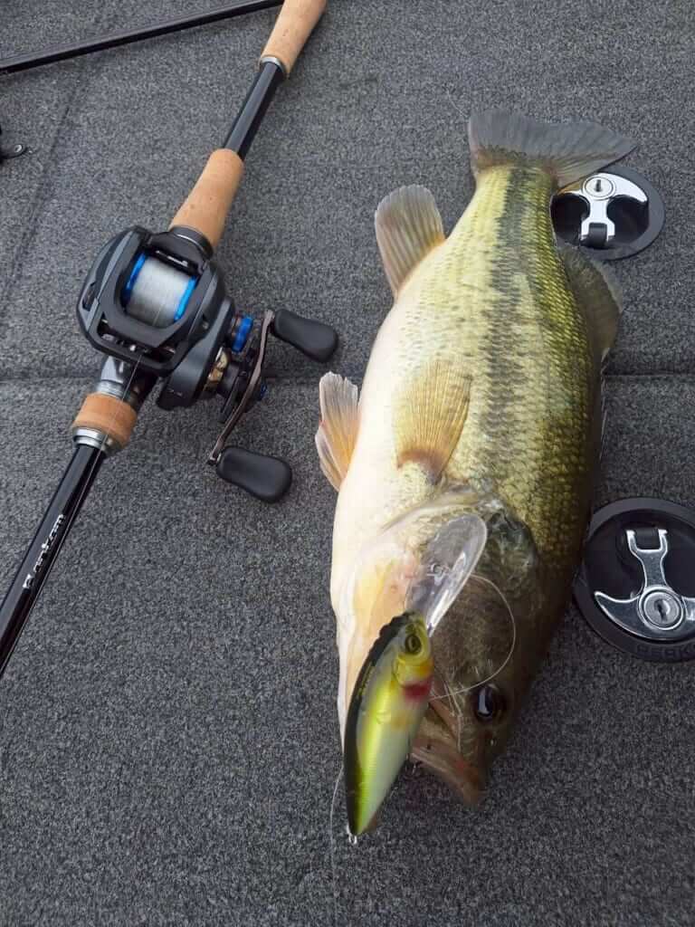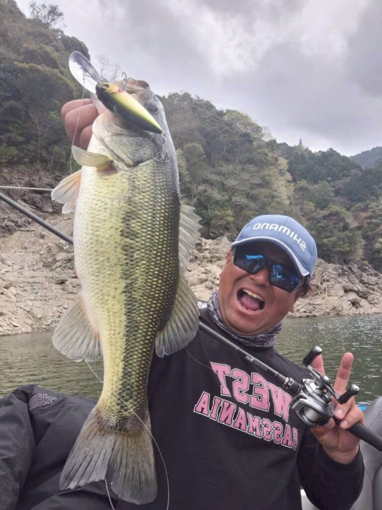 早明浦ダムの水質は基本的にクリアですので、アクションが強すぎると難しい…だからこそ、強すぎない優しいクランクのディープX300への反応が良いのです。