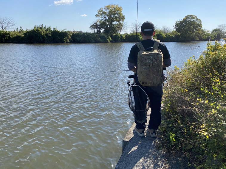走って…息が切れて、また走って。アングラーズパーク近くの護岸エリアに。