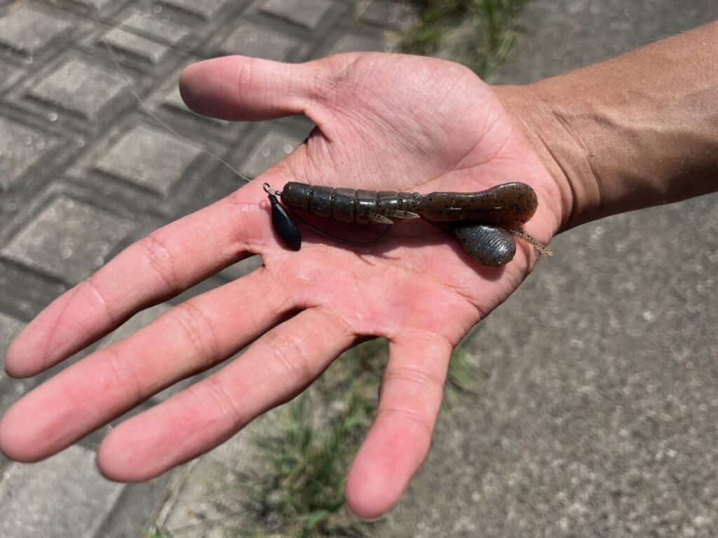 使っているのはドライブビーバー3.5インチの5gフリーリグ。これを沖に大遠投してズル引いてくる。
