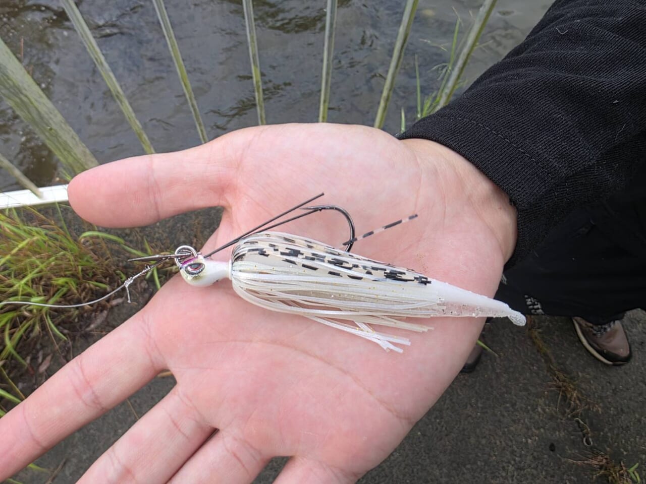 「1/4オンスです。新しく出たやつで、トレーラーはHPミノー5インチの頭をカットしたものをつけてます。霞はやっぱり浅いのでこのくらいのセッティングがレンジとスピード感的にも丁度いいですね」