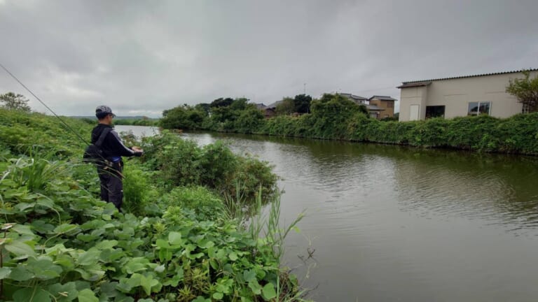 出れば北水路よりもサイズがひと回り良いという南水路。撃ちと巻きの両スタイルで、北側を出たり入ったり。