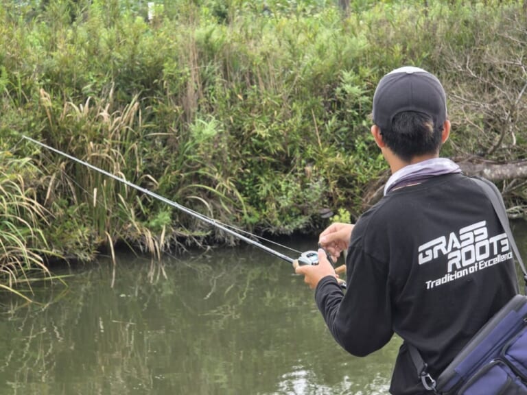 「チャターはスピナーベイトと違って余分なパーツが無い分、今みたいにカバーの脇を性格に通してきたい時は重宝しますね。ゴミも引っ掛かりにくいですし」